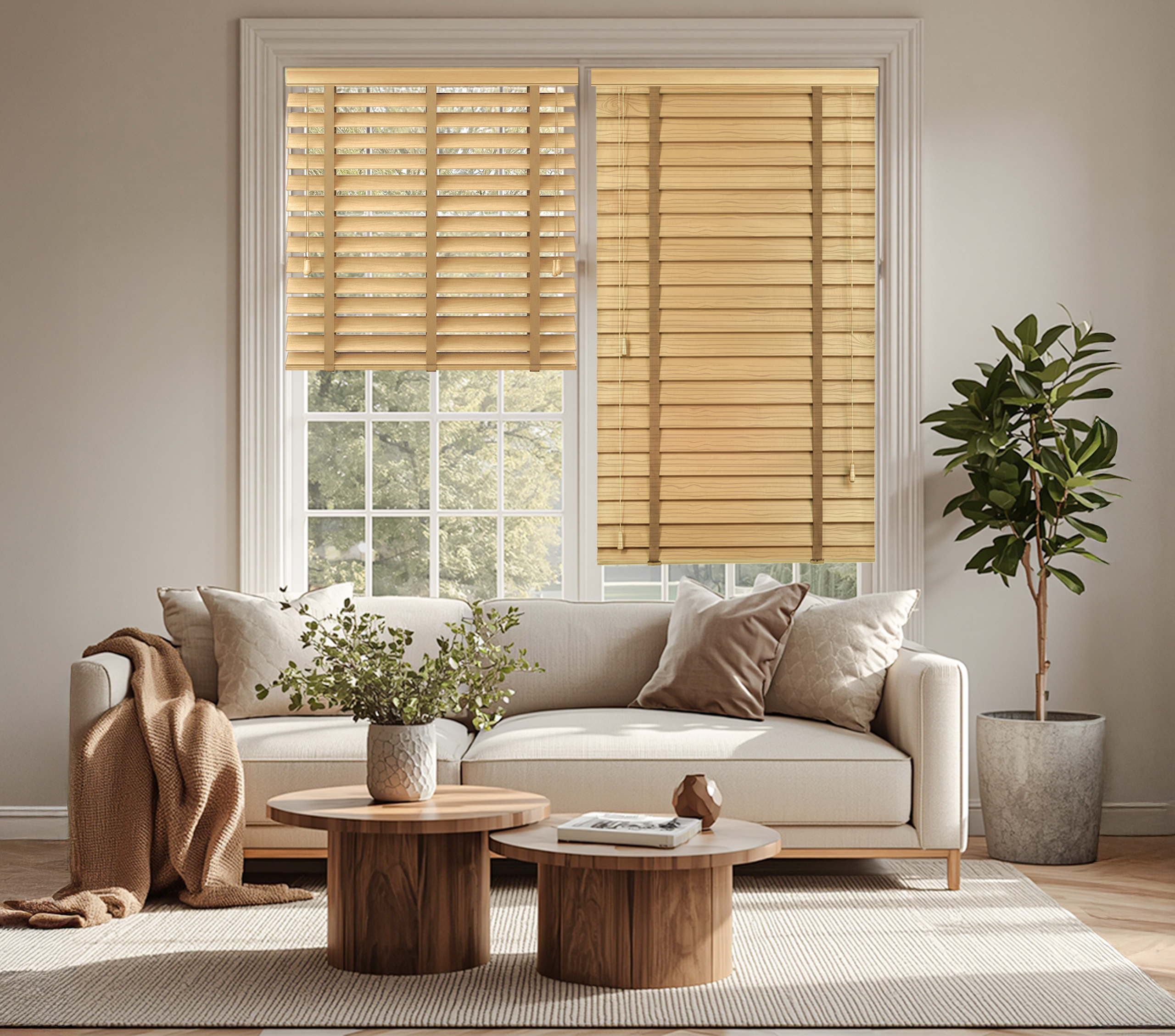 Vista wooden blinds: classic elegance, practical, modern, with wider slats for privacy.