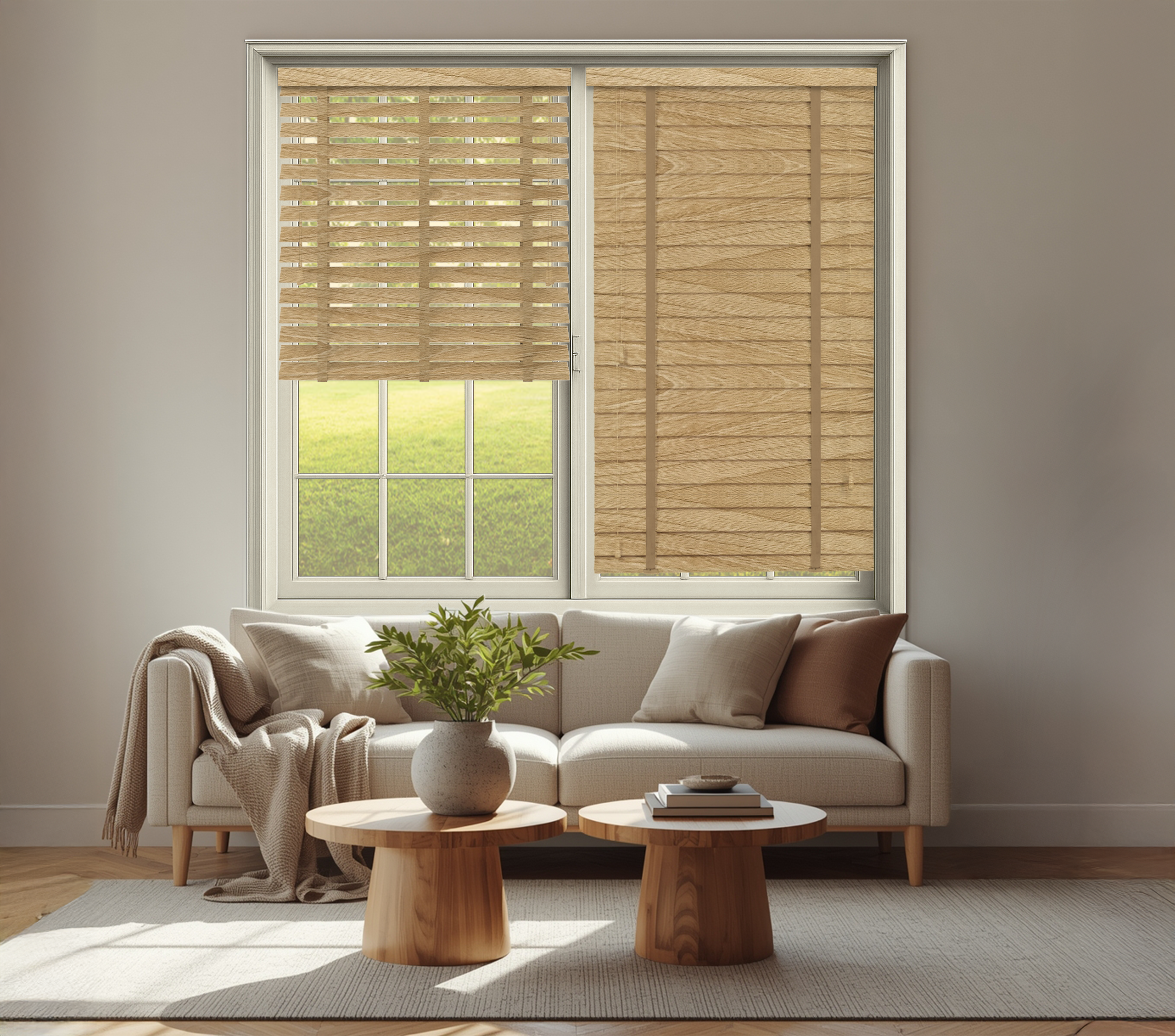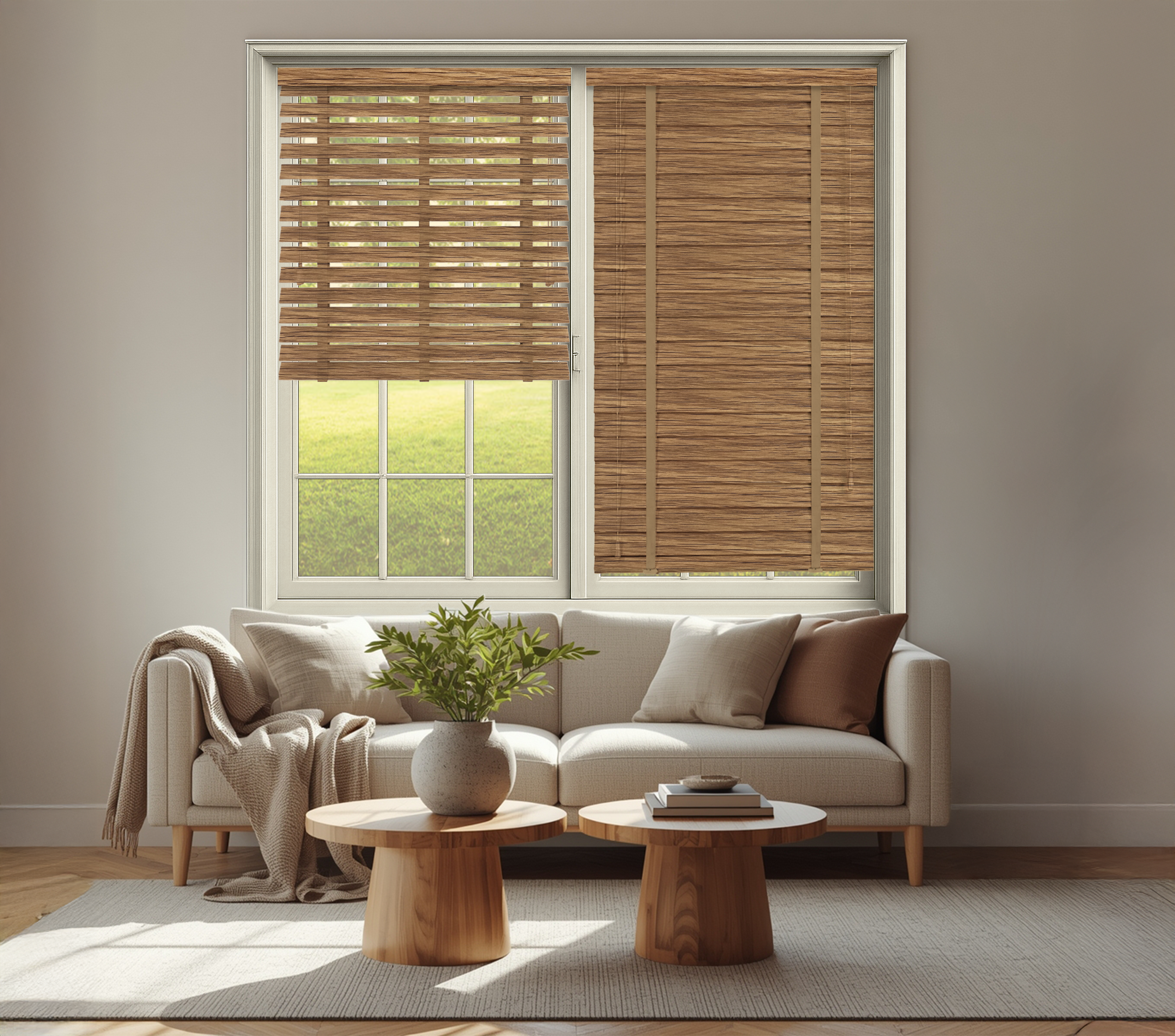 Wooden blinds in bamboo, reed, and wood shades elevate spaces effortlessly.